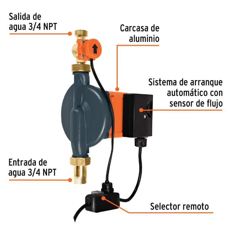 Bomba presurizadora de 1/3 HP marca Truper, modelo 14637, con sensor regulable. Diseñada para mejorar la presión de agua en sistemas domésticos. Silenciosa, eficiente y fácil de instalar, ideal para garantizar un flujo constante en baños, cocinas y más.