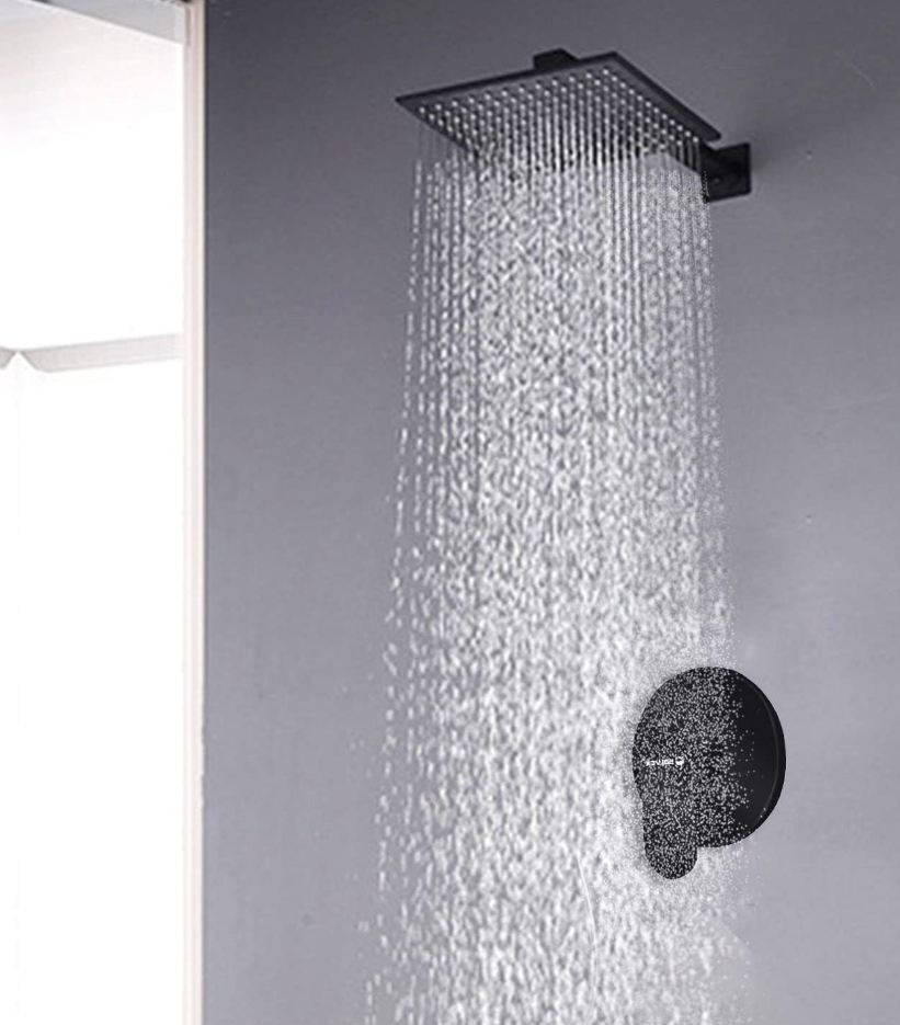- ACABADO NEGRO MATE ANTICORROSIÓN: EL ACABADO NEGRO MATE PUEDE RESISTIR LOS ARAÑAZOS DIARIOS, LA CORROSIÓN Y EL DESLUSTRE EN LA DUCHA HÚMEDA.