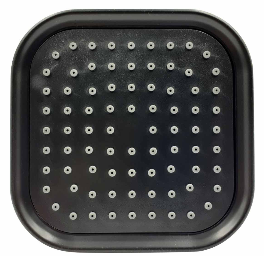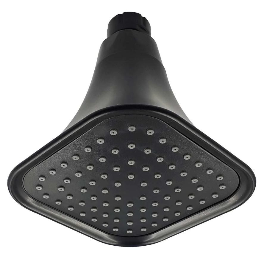 Regadera piramidal con acabado negro mate, diseñada para brindar una experiencia de baño moderna y elegante. Su forma geométrica y amplio flujo de agua ofrecen una cobertura uniforme y confortable. Fabricada con materiales resistentes y de fácil limpieza, combina estilo y funcionalidad.