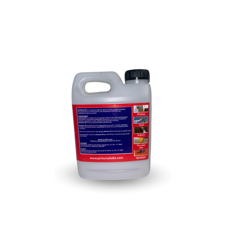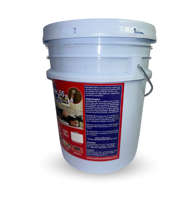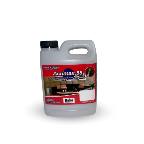 Se recomienda 1 a 2 (L.) de Acrimax 55 por cada 50 kg. de cemento en saco usado en la mezcla.