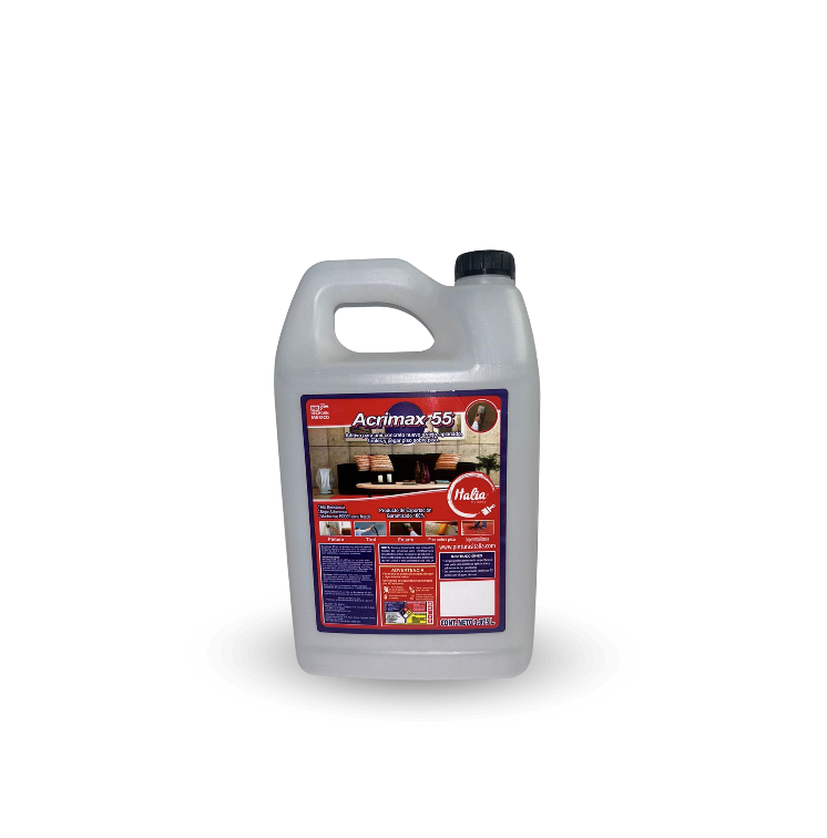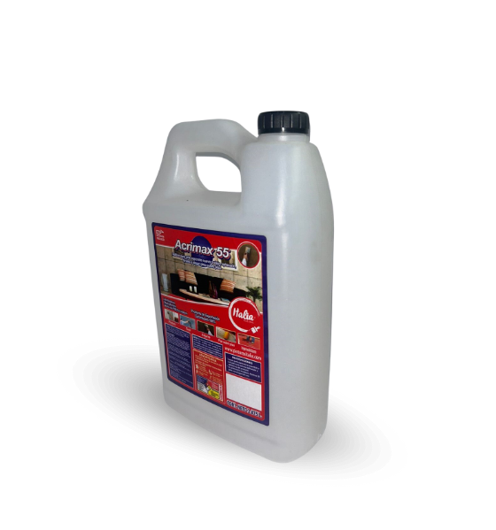 Diluye en agua hasta que la mezcla sea homogénea 5x1 (5 litros de agua por cada 1 litro de Acrimax 55).