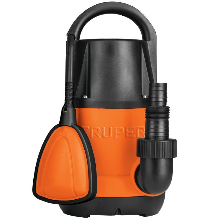 BOMBA SUMERGIBLE TRUPER DE PLÁSTICO, MODELO 12601, CON POTENCIA DE 1/2 HP. IDEAL PARA AGUA LIMPIA, PERFECTA PARA USO DOMÉSTICO O EN JARDINES. LIGERA, RESISTENTE Y FÁCIL DE INSTALAR.