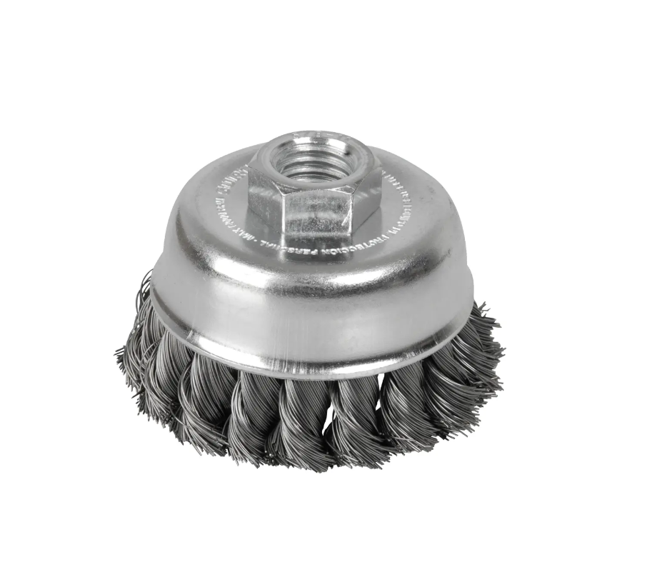 ACCESORIO IDEAL PARA LIMPIEZA, DESBASTE Y REMOCIÓN DE ÓXIDO O PINTURA EN SUPERFICIES METÁLICAS. SU DISEÑO CON ALAMBRE GRUESO DE ACERO INOXIDABLE Y ROSCA DE 5/8" GARANTIZA RESISTENCIA, DURABILIDAD Y COMPATIBILIDAD CON DIFERENTES HERRAMIENTAS ROTATIVAS.