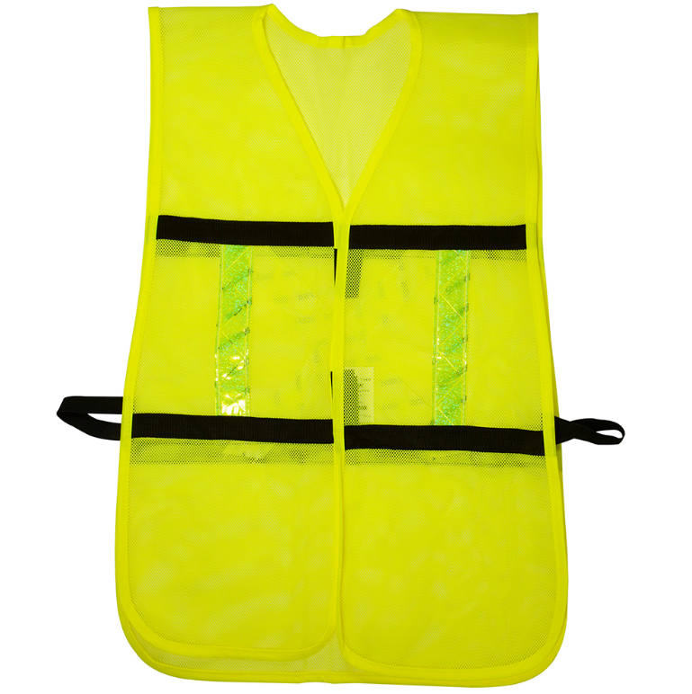 CHALECO REFLEJANTE COLOR AMARILLO CON MICROESFERAS. DISENADO EN TELA TIPO MALLA DE PUNTO ABIERTO. CON AJUSTE FRONTAL DE DOBLE GANCHO Y FELPA. CORREAS LATERALES CON RESORTE PARA MEJORAR AJUSTE. BIES DE 1″ FABRICADO EN POLIPROPILENO.