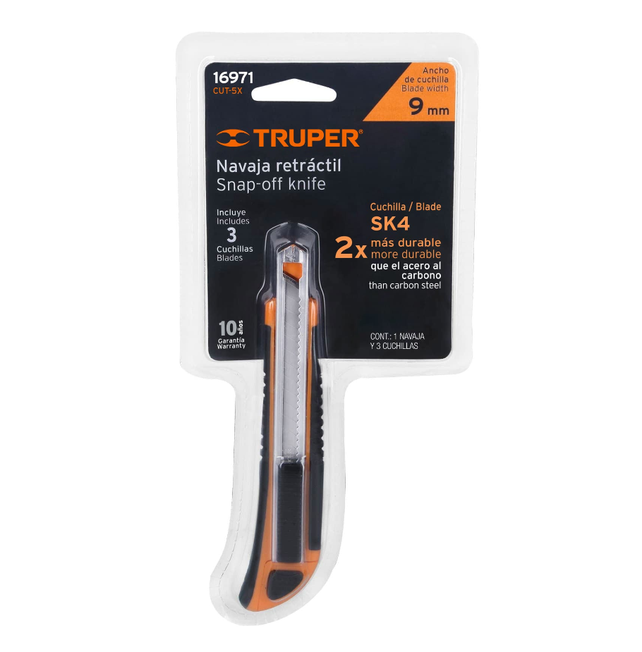 CUTTER 9 MM PROFESIONAL CON ALMA METÁLICA Y GRIP, TRUPER