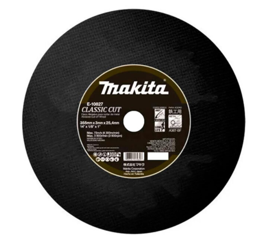 EL DISCO ABRASIVO DE CORTE METAL DE 14″ MODELO E-10827 DE MAKITA ES UNA HERRAMIENTA DE ALTA CALIDAD DISEÑADA PARA REALIZAR CORTE EFICIENTE Y PRECISO EN MATERIALES METÁLICOS. SU DIÁMETRO DE 14″ OFRECE UNA AMPLIA ÁREA DE CORTE, MIENTRAS QUE SU CONSTRUCCIÓN ROBUSTA GARANTIZA UNA LARGA VIDA ÚTIL Y UNA ALTA RESISTENCIA AL DESGASTE. IDEAL PARA USO EN HERRAMIENTAS DE CORTE INDUSTRIALES Y DE CONSTRUCCIÓN, ESTE DISCO ES PERFECTO PARA PROYECTOS QUE REQUIEREN UN CORTE RÁPIDO Y LIMPIO EN METAL.