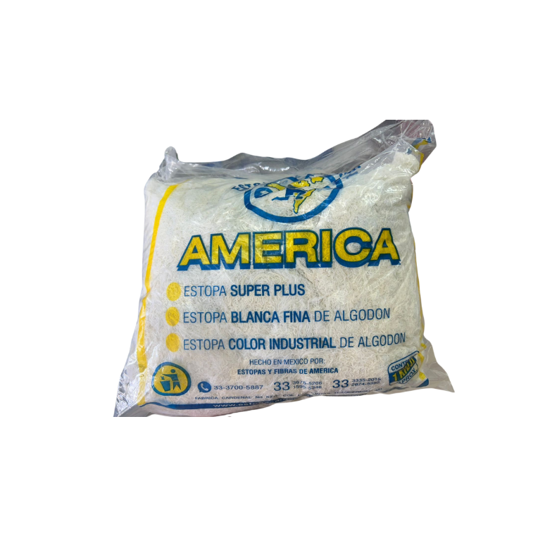 LA ESTOPA BLANCA ES UN MATERIAL FIBROSO HECHO DE ALGODÓN O DE HILOS DE TEXTILES RECICLADOS, UTILIZADO PRINCIPALMENTE PARA LIMPIAR SUPERFICIES, APLICAR CERAS O PULIMENTOS, Y EN TRABAJOS DE PLOMERÍA PARA SELLAR ROSCAS. ES SUAVE, ABSORBENTE Y RESISTENTE, LO QUE LA HACE IDEAL PARA TAREAS DE LIMPIEZA Y MANTENIMIENTO.