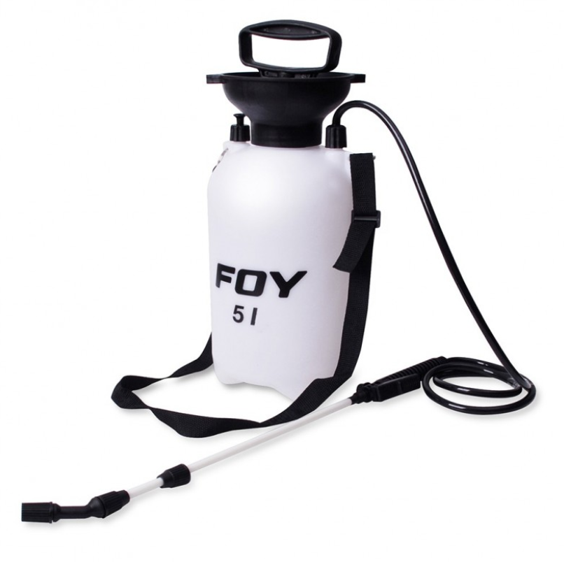 Fumigador con accesorios plásticos de 1.3 galones marca FOY, modelo 143070. Ideal para aplicaciones de pesticidas, fertilizantes y líquidos de limpieza. Diseño ligero, resistente y fácil de usar para trabajos en jardinería o mantenimiento.