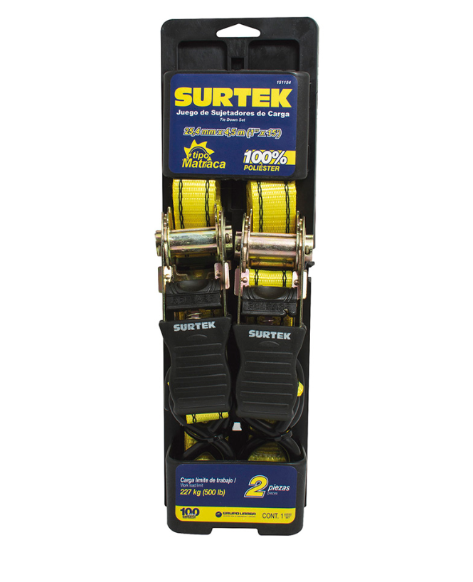 JUEGO DE 2 SUJETADORES Y TENSORES TIPO MATRACA 4.5M SURTEK