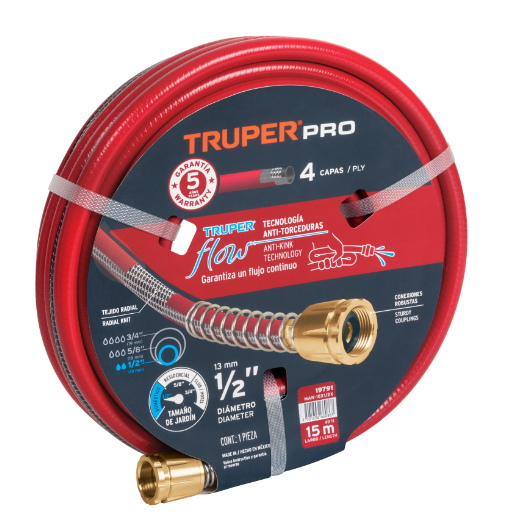 MANGUERA 1/2" SUPER REFORZADA 4 CAPAS 15 M CONEXIONES METAL 19791 TRUPER