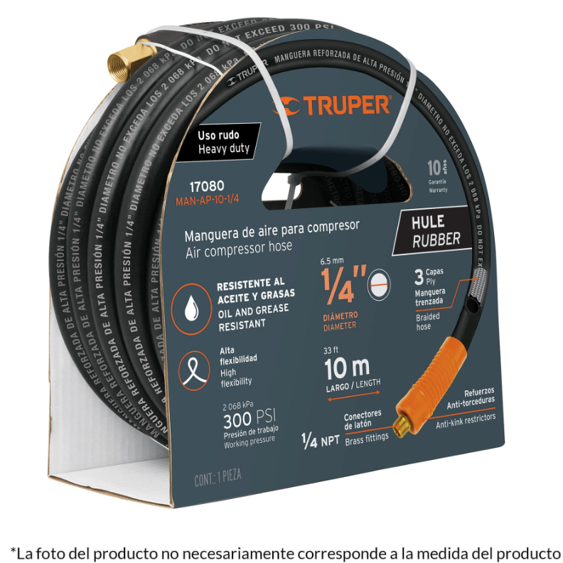 MANGUERA PARA COMPRESOR, DE HULE, 15M X 1/4", TRUPER 17081