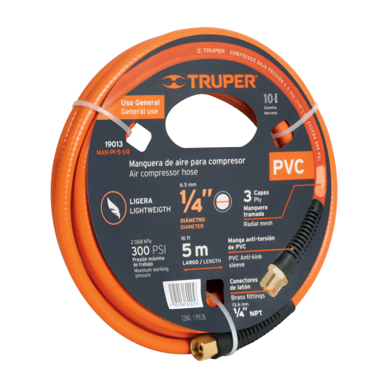 MANGUERA PARA COMPRESOR, DE PVC, 5M X 1/4", TRUPER 19013