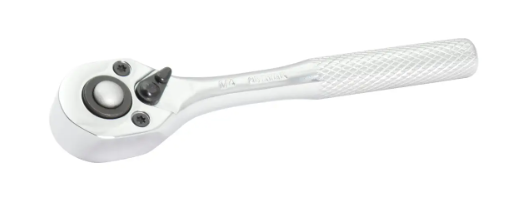 Matraca profesional con cuadro de 3/8", cabeza tipo pera y mecanismo reversible. Diseñada para brindar control, comodidad y durabilidad en el trabajo mecánico y de mantenimiento.