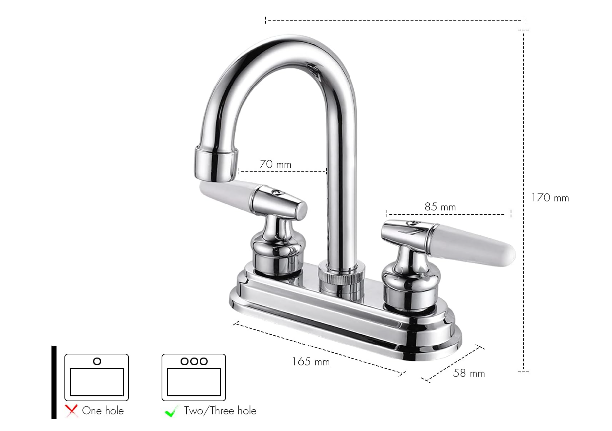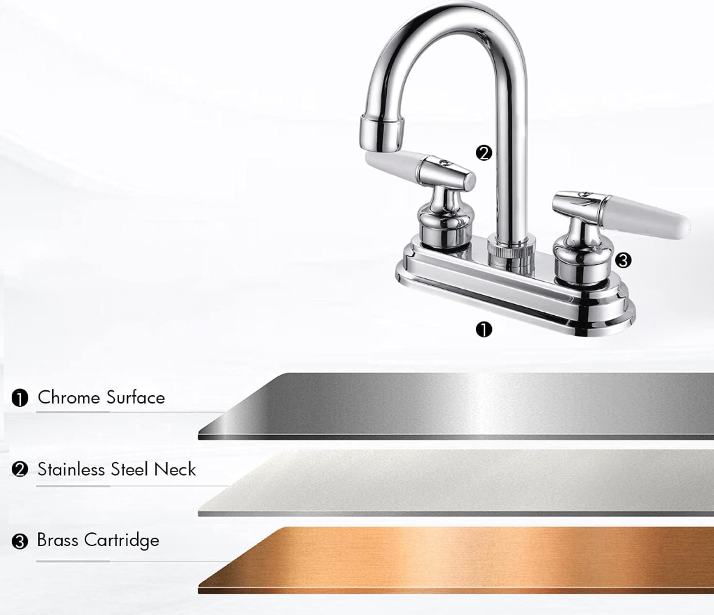- FÁCIL DE INSTALAR: ESTE LLAVE DE FREGADERO DE BAÑO ESTÁ DISEÑADO PARA ADAPTARSE A CONFIGURACIONES CENTRALES DE 3 AGUJEROS DE 4 PULGADAS. EL LLAVE DE BAÑO DE 2 ASAS SE ADAPTA A CASAS DE ALQUILER, CONDOMINIO NUEVO, DEPARTAMENTO, AUTOCARAVANA, REMOLQUE DE VIAJE Y USO FAMILIAR.