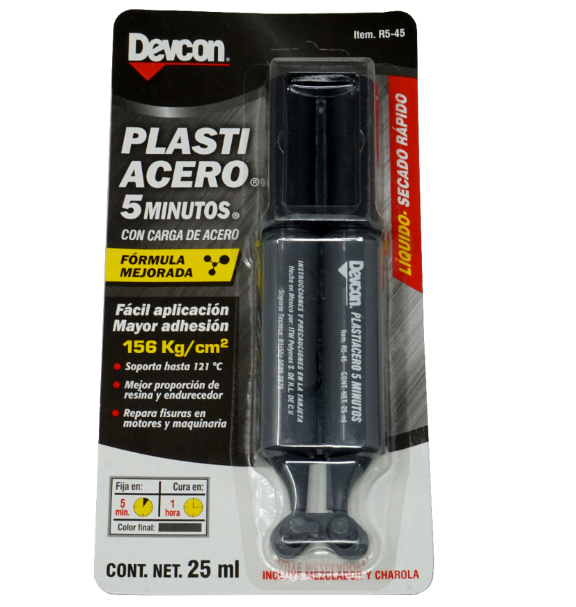 ADHESIVO EPÓXICO CON CARGA DE ACERO, PRESENTACIÓN EN JERINGA.