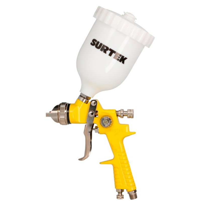PISTOLA DE GRAVEDAD CON VASO PLÁSTICO CON PRESIÓN DE TRABAJO DE 50 PSI, CAPACIDAD DE VASO DE 600 ML, ENTRADA DE AIRE 1/4" NPT.