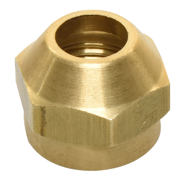 TUERCA CÓNICA 3/8 DE PULGADA, ÚTIL PARA CONEXIONES DE GAS POR ESTAR FABRICADO EN LATÓN, MATERIAL DE ALTA CALIDAD, DURABLE Y RESISTENTE A LA CORROSIÓN.
